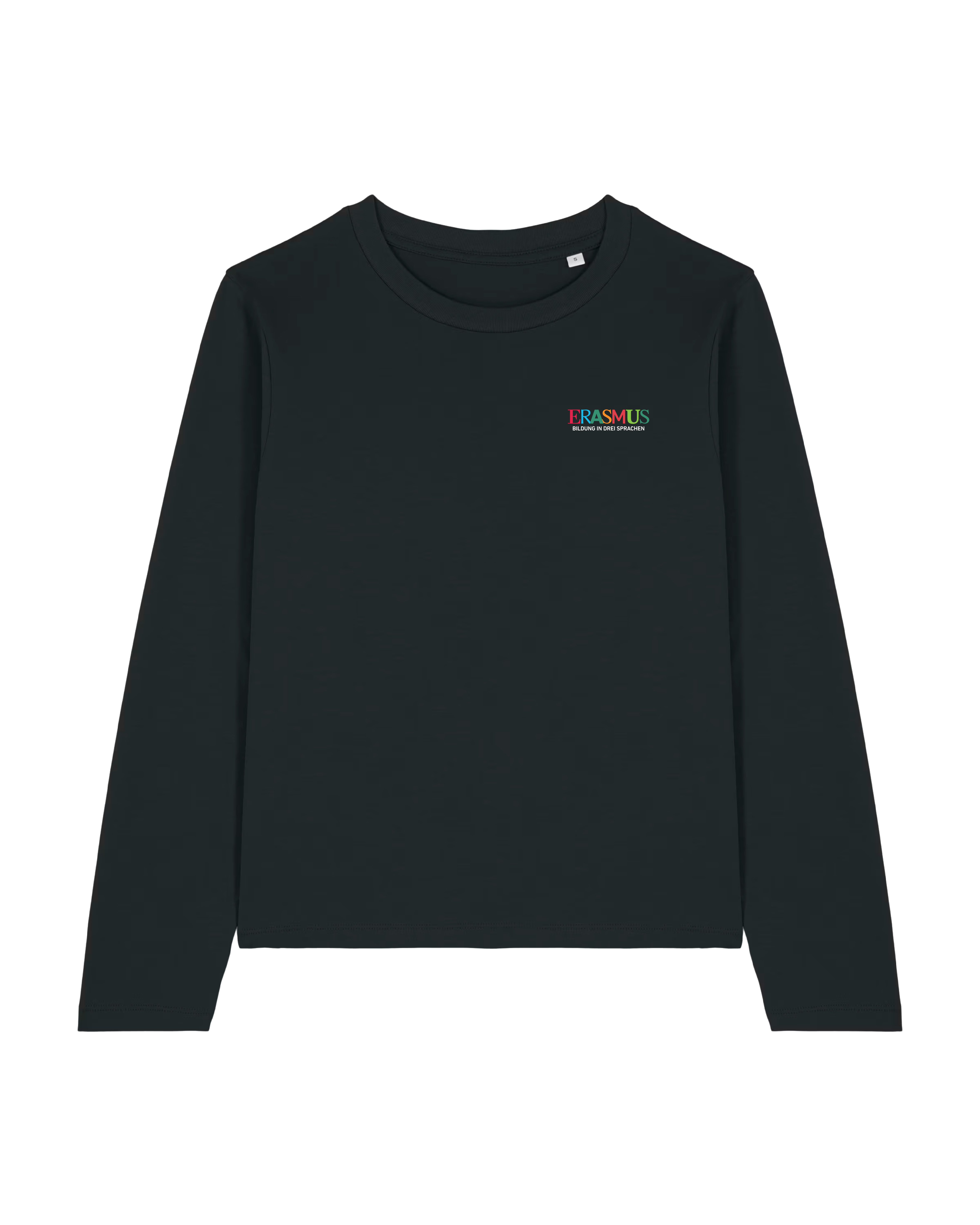 T-Shirt, Rundhals, langarm, tailliert, mit gesticktem Schullogo, 100% Baumwolle
